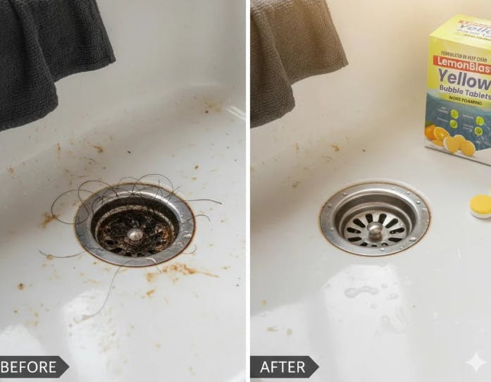 Maine LemonBlast tablet kitchen sink ke drain me use kiya aur honestly result kaafi acha laga. Tablet dalte hi bubbles nikalne lage aur lemon ki fresh smell aa gayi. Oil aur food residue jo smell kar raha tha wo dheere dheere kam ho gaya. Sink ab zyada fresh aur clean Dikkh rhaa.